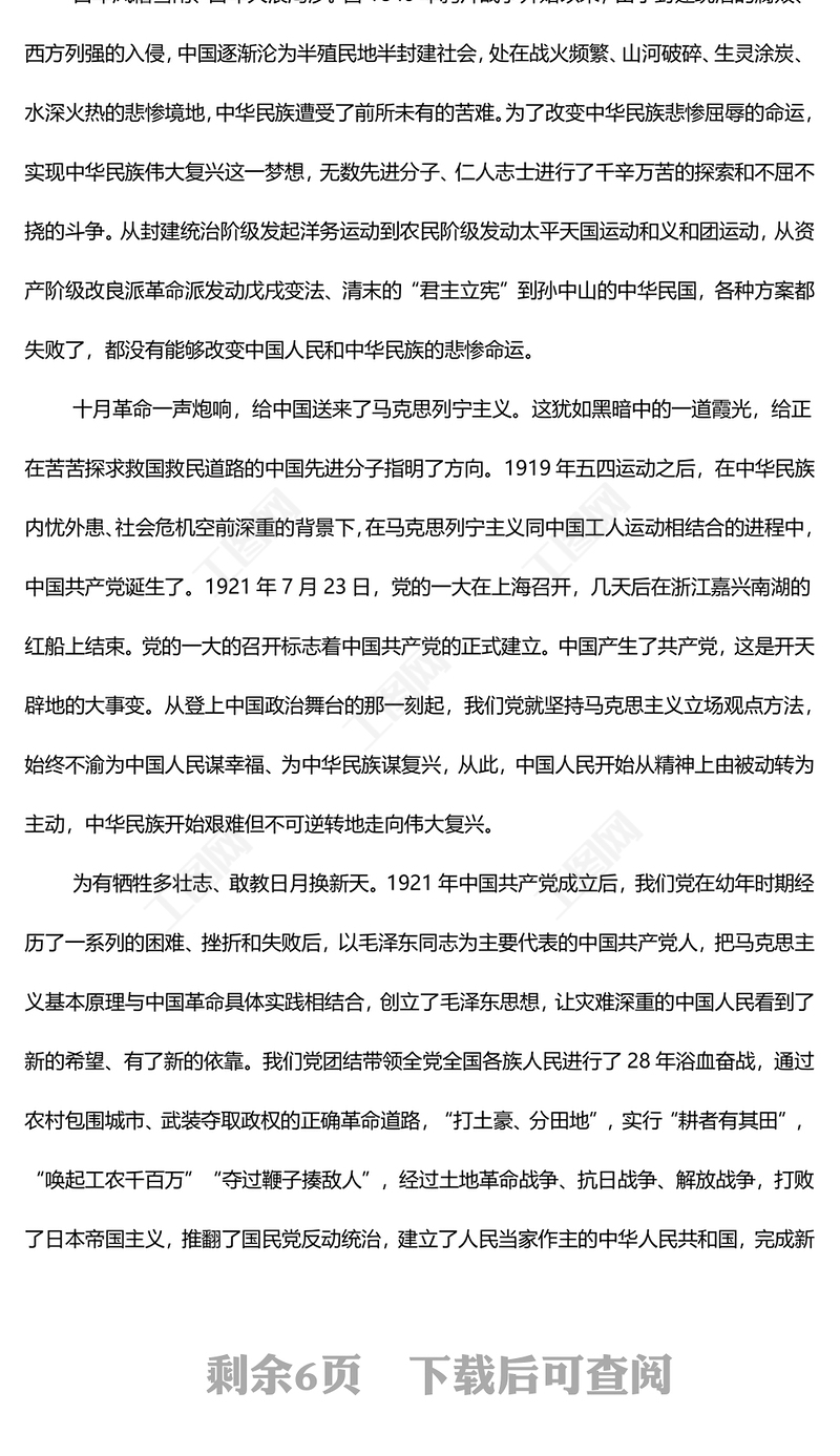 建黨103周年PPT精美簡潔重溫中國共產黨的光輝歷程黨課(講稿)