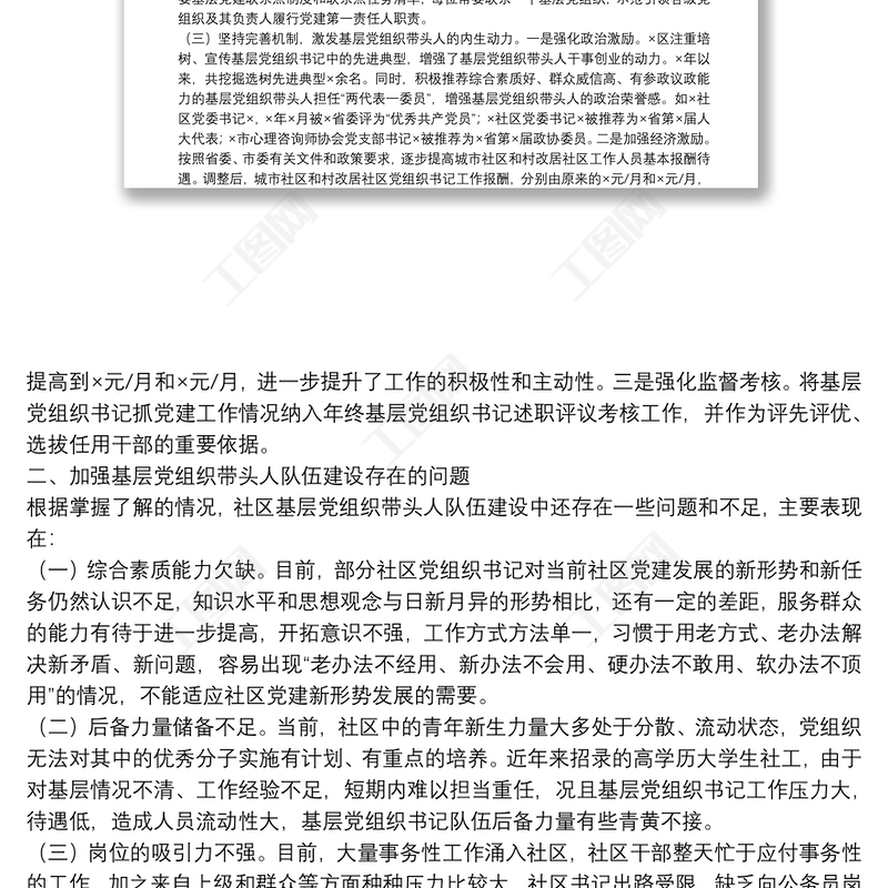 工圖網(wǎng)提供關(guān)于基層黨組織書記隊(duì)伍建設(shè)的情況匯報(bào)供會員免費(fèi)下載。更多精彩黨課PPT素材,盡在工圖網(wǎng)。