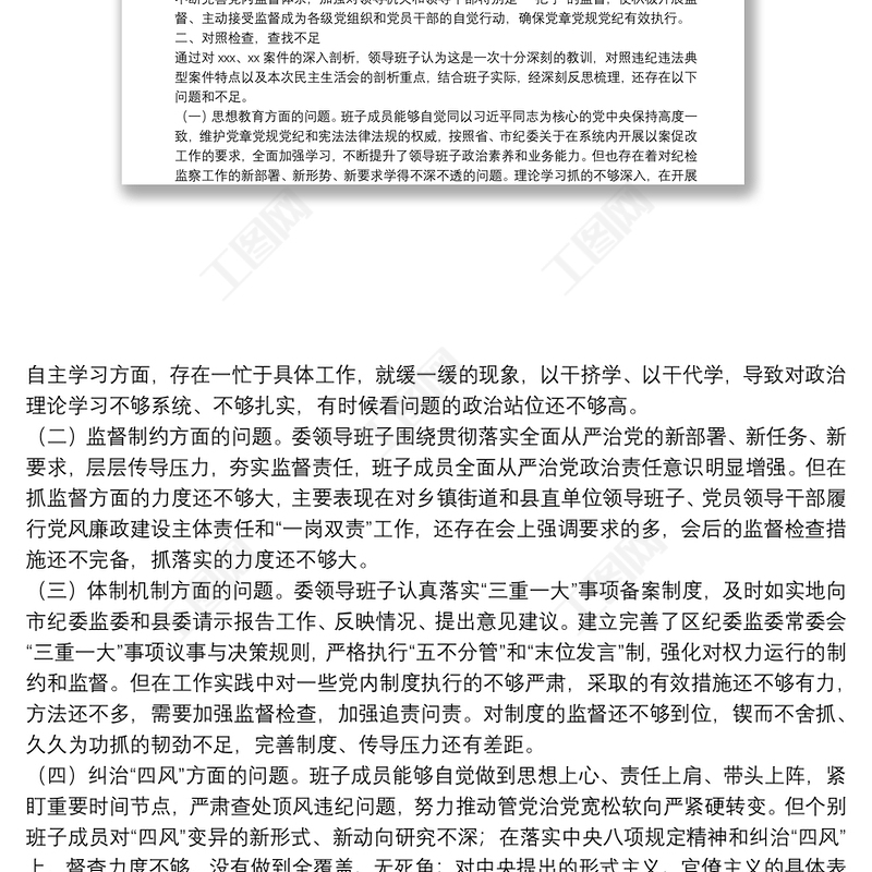 工圖網(wǎng)提供縣紀委監(jiān)委領(lǐng)導班子以案促改專題民主生活會對照檢查材料供會員免費下載。更多精彩黨課PPT素材,盡在工圖網(wǎng)。