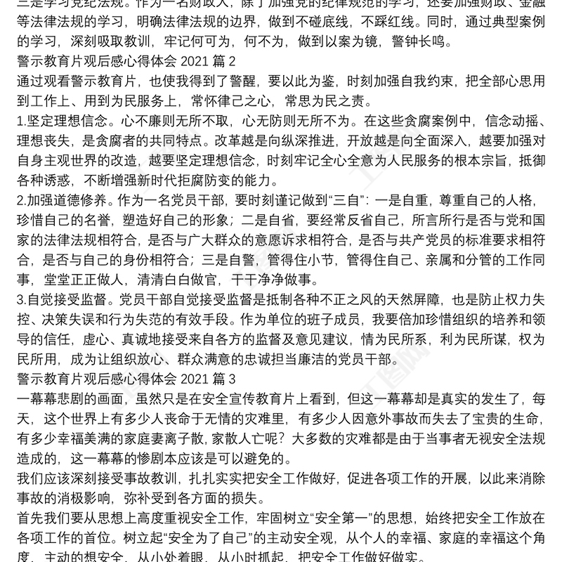 警示教育片觀后感心得體會20219篇 Array