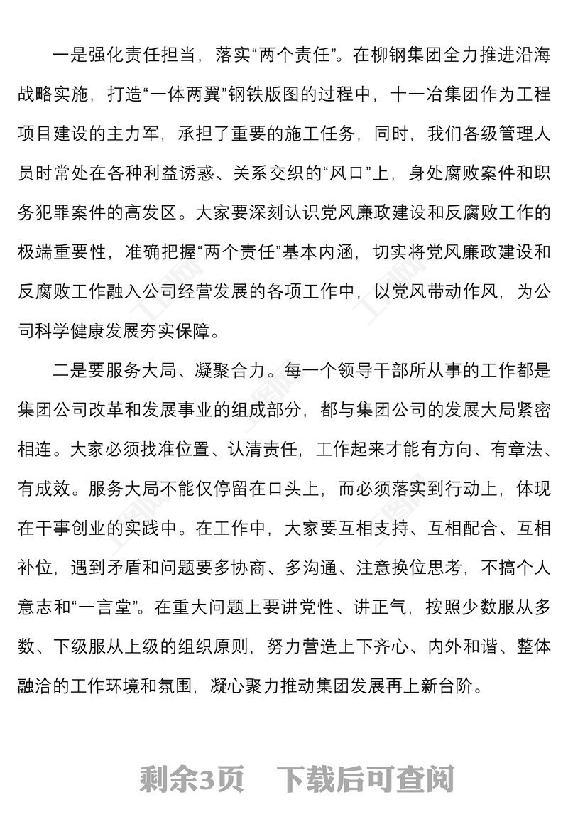 廉政談話公司紀(jì)委書記對干部任前廉潔警示談話講話范文集團(tuán)國有企業(yè)國企新任職 Array
