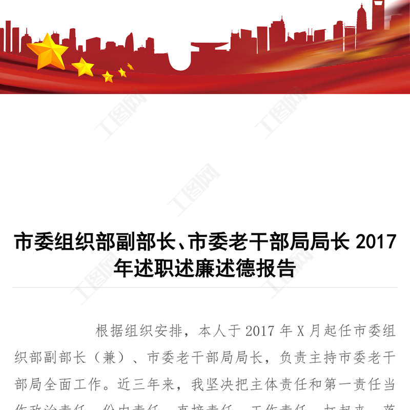 工圖網(wǎng)提供市委組織部副部長(zhǎng)市委老干部局局長(zhǎng)2017年述職述廉述德報(bào)告供會(huì)員免費(fèi)下載。更多精彩黨課PPT素材,盡在工圖網(wǎng)。