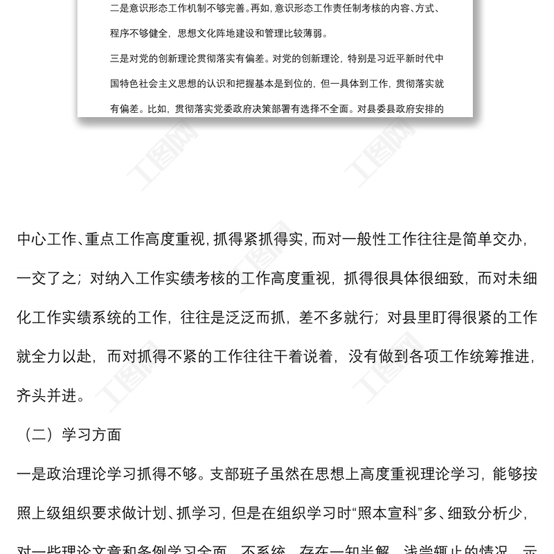 工圖網(wǎng)提供黨支部班子“迎盛會(huì)、鑄忠誠(chéng)、強(qiáng)擔(dān)當(dāng)、創(chuàng)業(yè)績(jī)”主題教育專題組織生活會(huì)對(duì)照檢查材料供會(huì)員免費(fèi)下載。更多精彩黨課PPT素材,盡在工圖網(wǎng)。