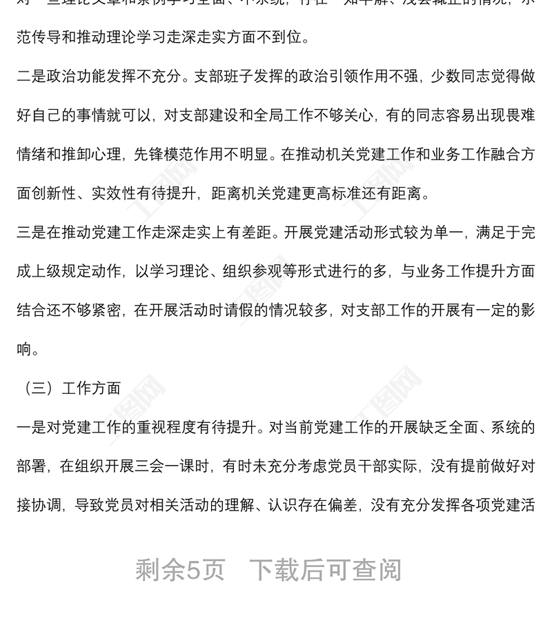 首頁(yè) > WORD文檔 > 對(duì)照檢查 > 黨支部班子“迎盛會(huì)、鑄忠誠(chéng)、強(qiáng)擔(dān)當(dāng)、創(chuàng)業(yè)績(jī)”主題教育專題組織生活會(huì)對(duì)照檢查材料.DOCX 【圖片、文字、動(dòng)畫(huà)均可編輯】