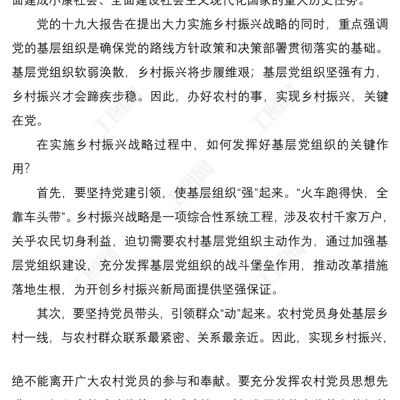 工圖網(wǎng)提供2021駐村第一書記關(guān)于黨建引領(lǐng)鄉(xiāng)村振興的黨課講稿供會(huì)員免費(fèi)下載。更多精彩黨課PPT素材,盡在工圖網(wǎng)。