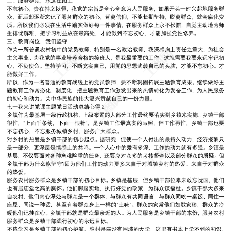 2020七一我來講黨課主題黨日活動總結(jié)心得2020 Array