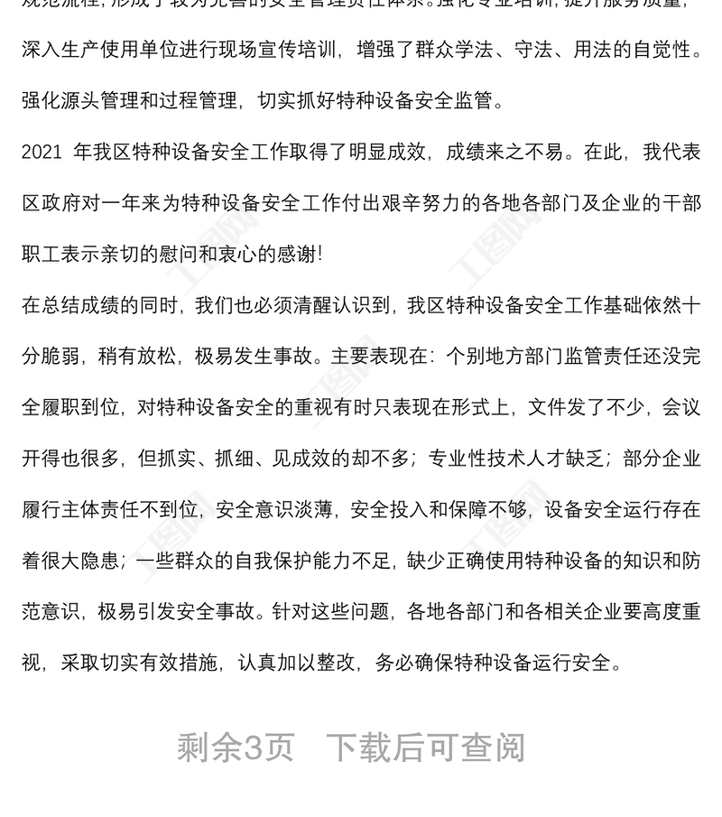 工圖網(wǎng)提供區(qū)政府副區(qū)長在全區(qū)特種設備安全工作會議上的講話供會員免費下載。更多精彩黨課PPT素材,盡在工圖網(wǎng)。