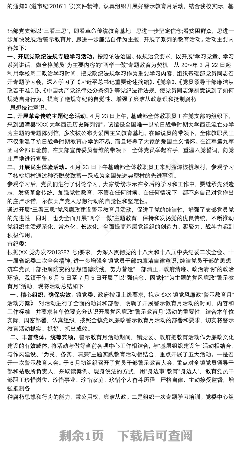 工圖網(wǎng)提供2021警示教育活動開展情況報(bào)告及“黨風(fēng)廉政警示教育月”活動總結(jié)供會員免費(fèi)下載。更多精彩黨課PPT素材,盡在工圖網(wǎng)。