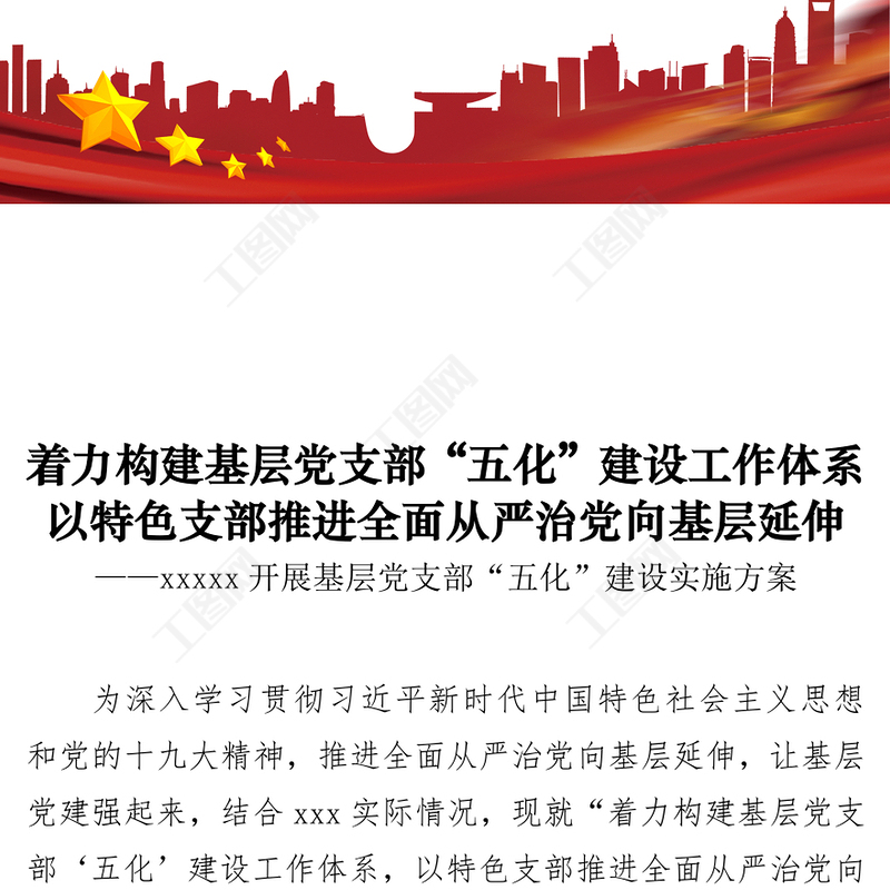 工圖網(wǎng)提供著力構(gòu)建基層黨支部“五化”建設(shè)工作體系以特色支部推進(jìn)全面從嚴(yán)治黨向基層延伸供會(huì)員免費(fèi)下載。更多精彩黨課PPT素材,盡在工圖網(wǎng)。
