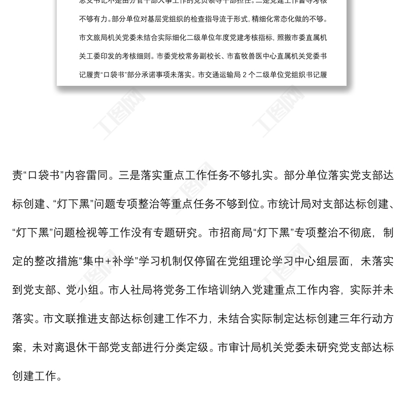 工圖網(wǎng)提供基層黨建專項(xiàng)檢查情況報(bào)告供會(huì)員免費(fèi)下載。更多精彩黨課PPT素材,盡在工圖網(wǎng)。