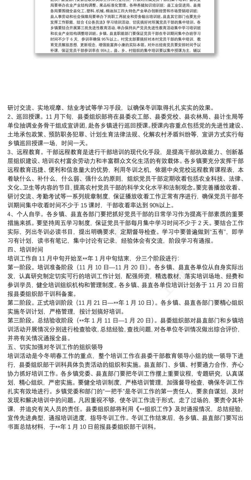 黨員干部開展冬季培訓(xùn)方案 Array