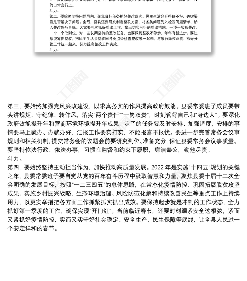 工圖網(wǎng)提供縣委書記在黨史學(xué)習(xí)教育專題民主生活會上的總結(jié)講話供會員免費下載。更多精彩黨課PPT素材,盡在工圖網(wǎng)。