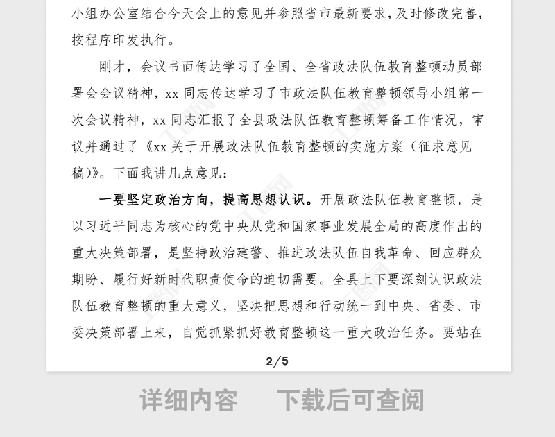 > 主持詞致辭 > 主持詞總結(jié)講話全縣政法隊伍教育整頓領(lǐng)導(dǎo)小組會議主持詞和領(lǐng)導(dǎo)總結(jié)講話范文.DOCX 【圖片、文字、動畫均可編輯】