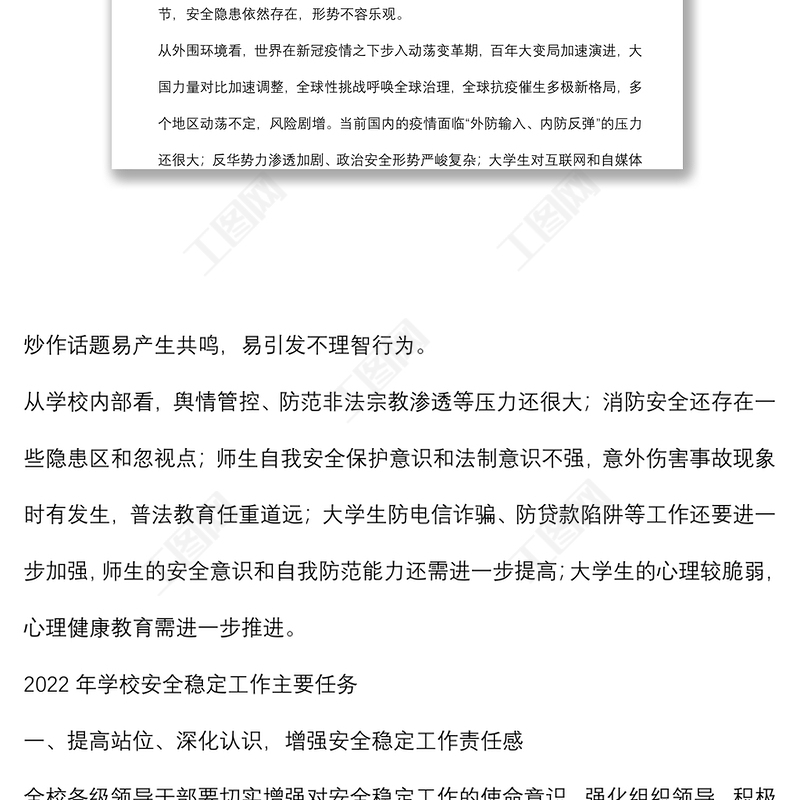 工圖網(wǎng)提供在學(xué)校2022年安全穩(wěn)定工作會議上的講話供會員免費(fèi)下載。更多精彩黨課PPT素材,盡在工圖網(wǎng)。