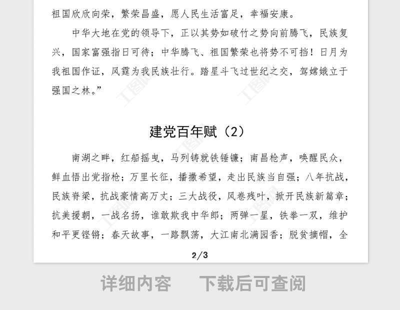工圖網(wǎng)提供2篇100周年征文2篇供會員免費(fèi)下載。更多精彩黨課PPT素材,盡在工圖網(wǎng)。