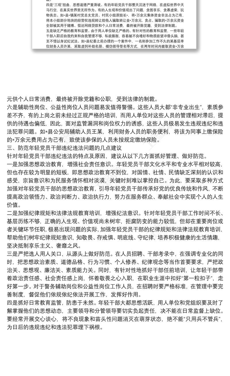 關(guān)于防范年輕黨員干部貪污腐敗等違紀(jì)違法問題的思考與對策