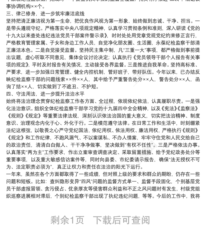 首頁 > WORD文檔 > 黨風廉政 > 縣委常委、紀委書記、監(jiān)委主任20**年述學述職述責述廉述法報告.DOCX 【圖片、文字、動畫均可編輯】