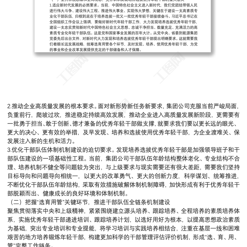 工圖網(wǎng)提供X集團(tuán)公司關(guān)于適應(yīng)新時(shí)代要求大力發(fā)現(xiàn)培養(yǎng)選拔優(yōu)秀年輕干部的中期規(guī)劃的方案供會(huì)員免費(fèi)下載。更多精彩黨課PPT素材,盡在工圖網(wǎng)。
