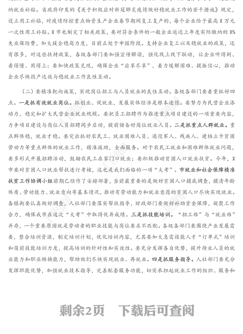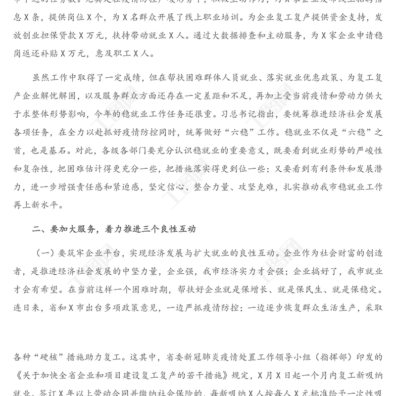 2021年收看全省穩(wěn)就業(yè)工作電視會(huì)議后的講話