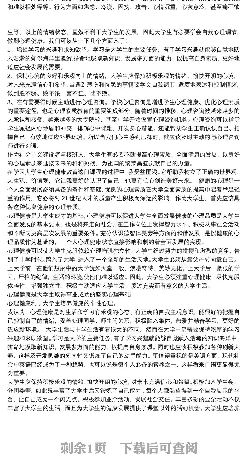 工圖網(wǎng)提供大學(xué)心理健康心得體會供會員免費(fèi)下載。更多精彩黨課PPT素材,盡在工圖網(wǎng)。