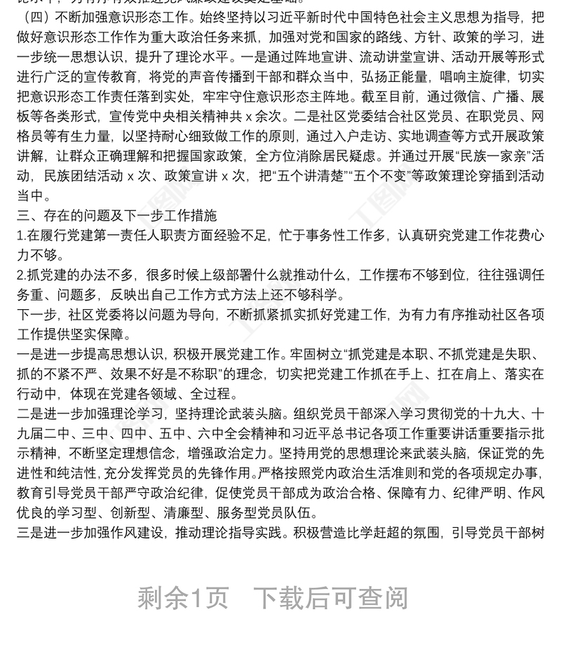 工圖網(wǎng)提供社區(qū)黨委書記2021年抓基層黨建工作述職報告 供會員免費下載。更多精彩黨課PPT素材,盡在工圖網(wǎng)。