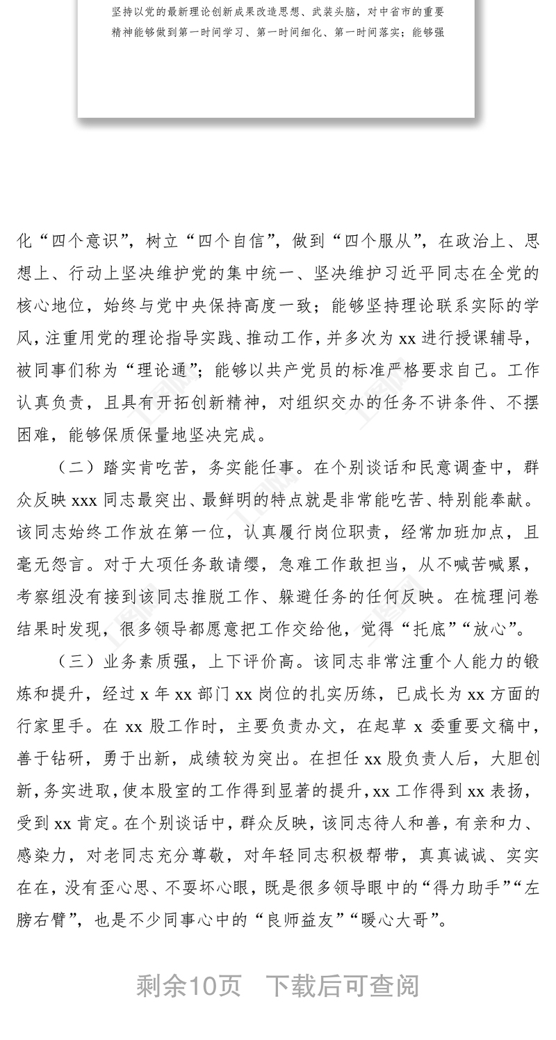 工圖網(wǎng)提供2021干部考察材料范文(5篇)供會(huì)員免費(fèi)下載。更多精彩黨課PPT素材,盡在工圖網(wǎng)。