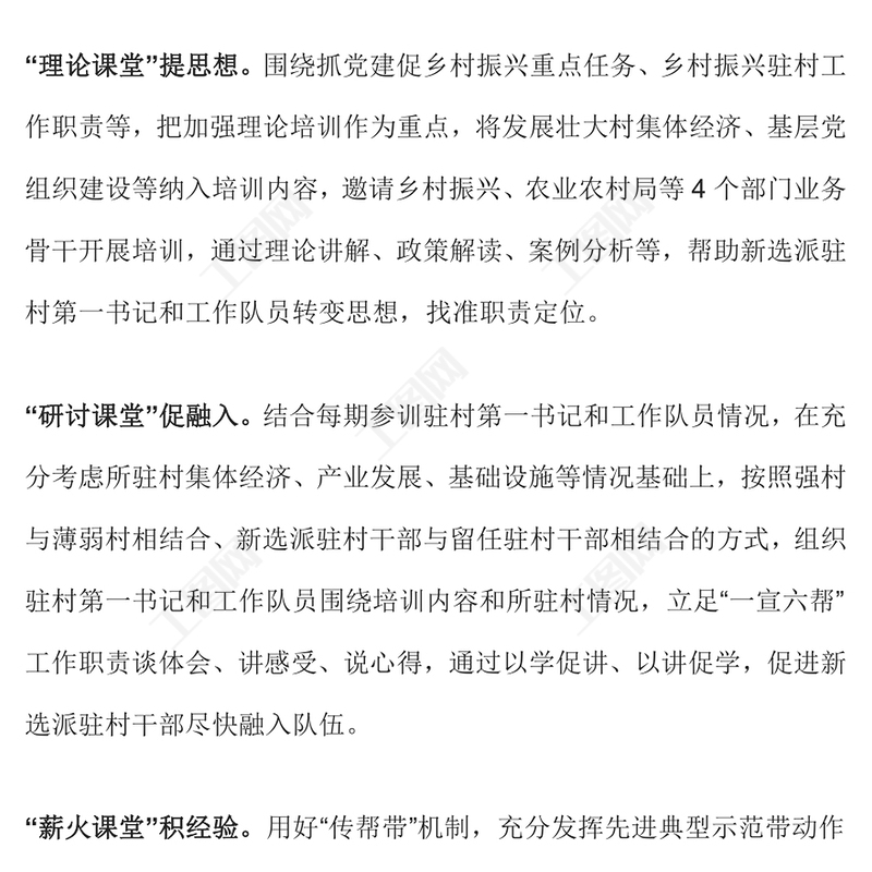 > 黨課講稿 > 四堂課提升駐村干部培訓(xùn)實(shí)效PPT凝聚駐村幫扶工作強(qiáng)大合力全面推進(jìn)鄉(xiāng)村振興專題課件(講稿).DOCX 【圖片、文字、動(dòng)畫均可編輯】