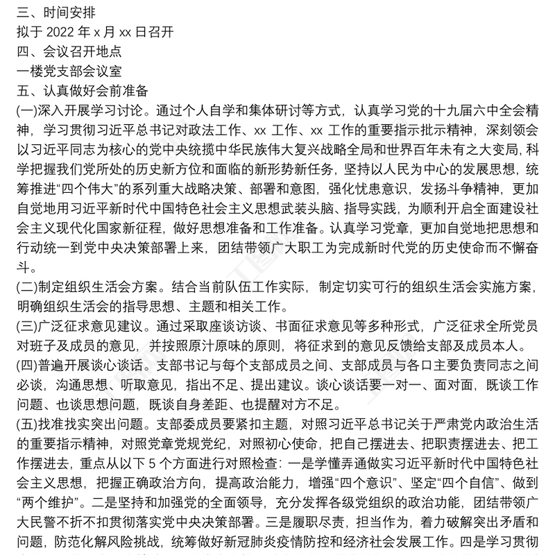 2022年xx單位x黨支部組織生活會實(shí)施方案