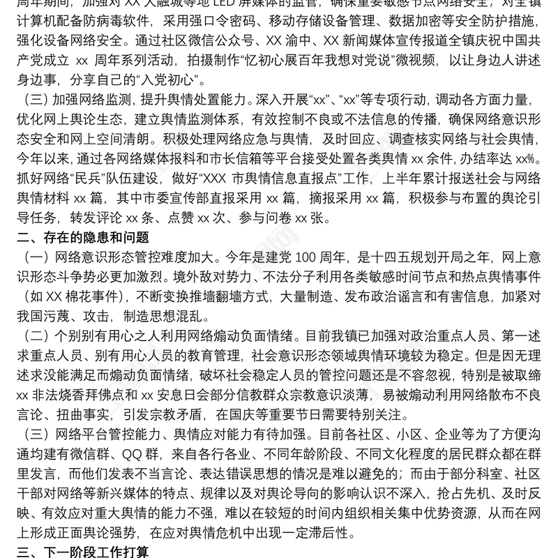 關(guān)于20xx年上半年網(wǎng)絡(luò)意識(shí)形態(tài)工作開展情況匯報(bào)范文 Array