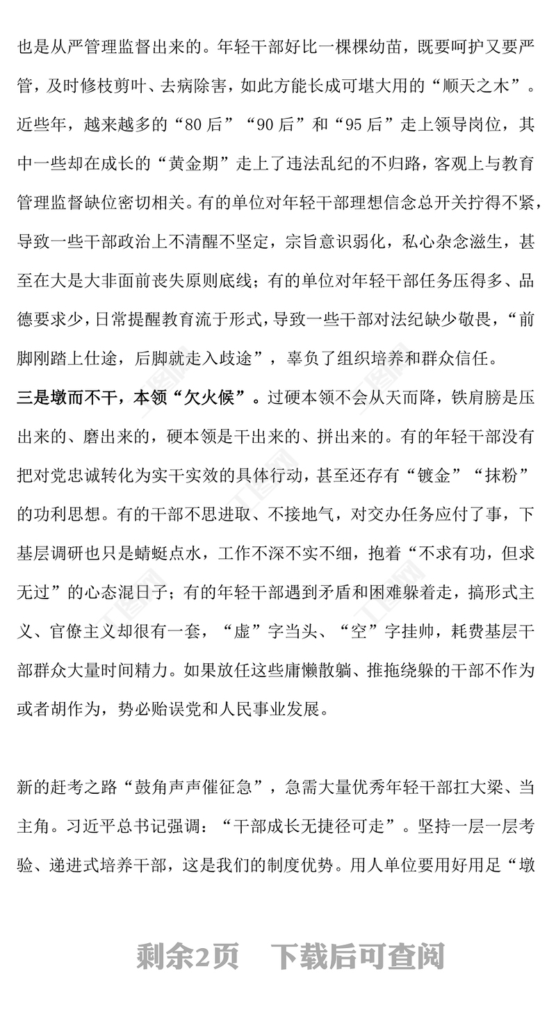 > 黨課講稿 > 年輕干部“墩苗”培養(yǎng)要注意什么PPT精美大氣用當(dāng)其時嚴(yán)管厚愛實干擔(dān)當(dāng)培養(yǎng)歷練年輕干部黨課課件(講稿).DOCX 【圖片、文字、動畫均可編輯】