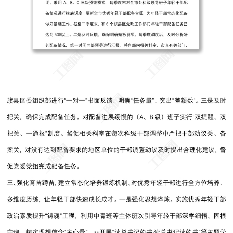 工圖網(wǎng)提供年輕干部培養(yǎng)選拔工作交流發(fā)言供會(huì)員免費(fèi)下載。更多精彩黨課PPT素材,盡在工圖網(wǎng)。