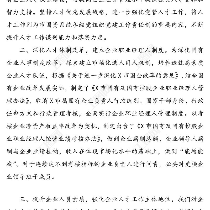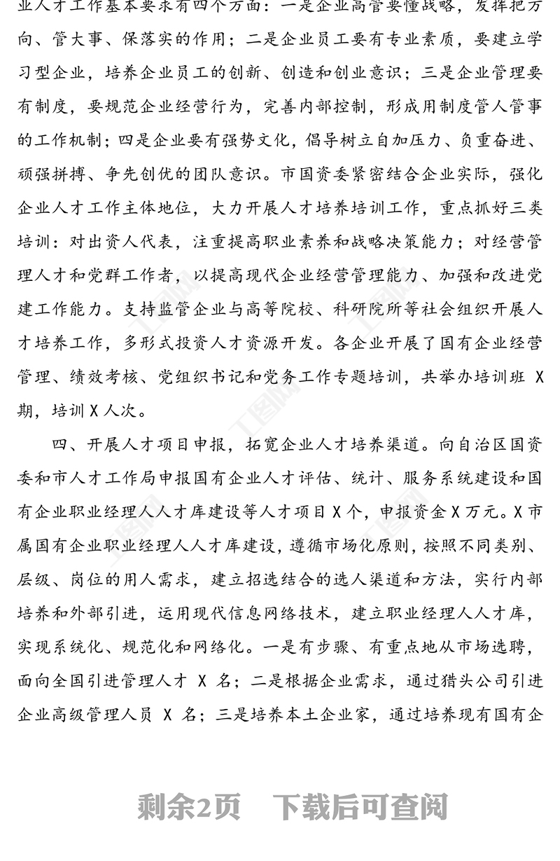 國資委人才工作半年工作總結(jié)匯報(bào),工作總結(jié),公文 Array