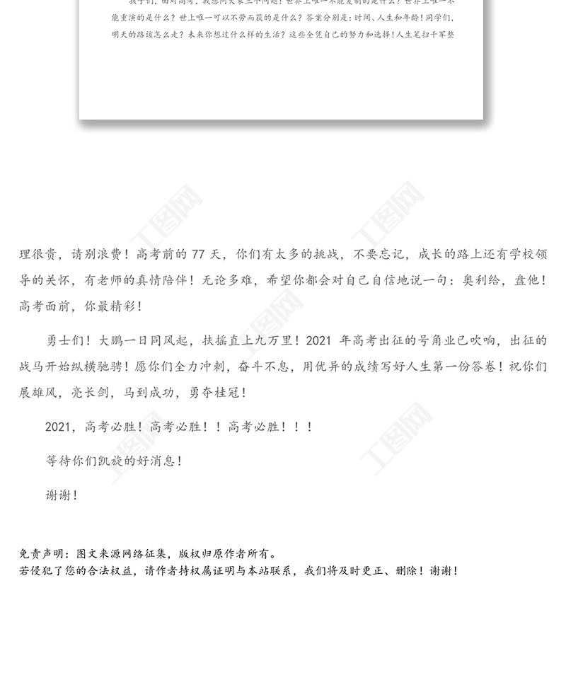 工圖網(wǎng)提供2021年在高考沖刺動(dòng)員大會(huì)上的講話供會(huì)員免費(fèi)下載。更多精彩黨課PPT素材,盡在工圖網(wǎng)。