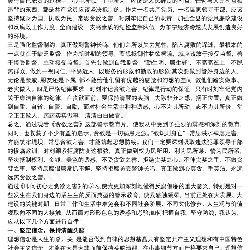 2021警示教育片《貪欲之害》觀后感三篇