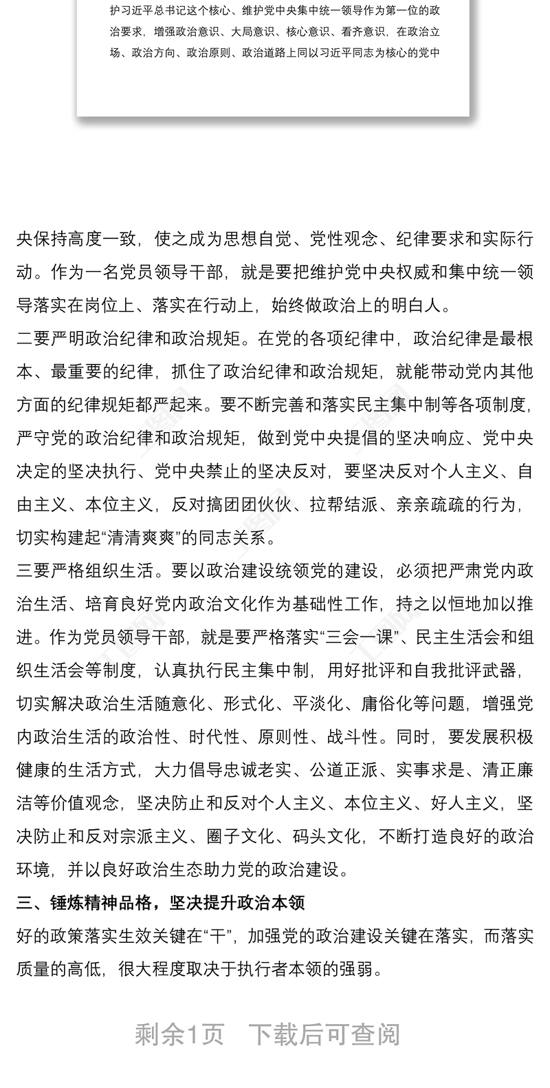 領(lǐng)導(dǎo)干部“加強(qiáng)黨的政治建設(shè)”研討發(fā)言材料(心得體會(huì)可參考)包含