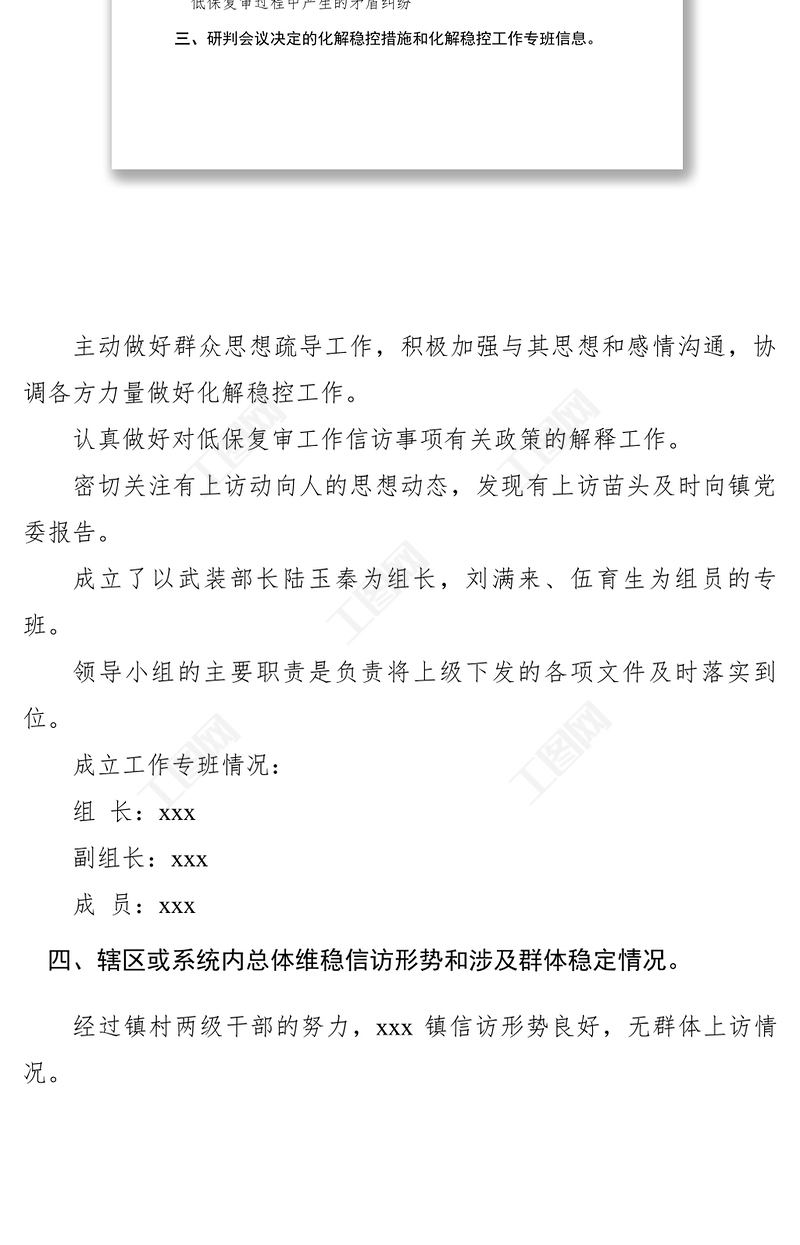 工圖網(wǎng)提供2021【公文模板】鄉(xiāng)鎮(zhèn)維穩(wěn)信訪形勢(shì)分析研判會(huì)議周報(bào)告供會(huì)員免費(fèi)下載。更多精彩黨課PPT素材,盡在工圖網(wǎng)。