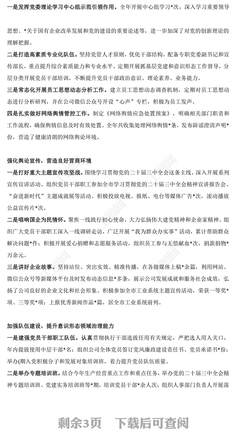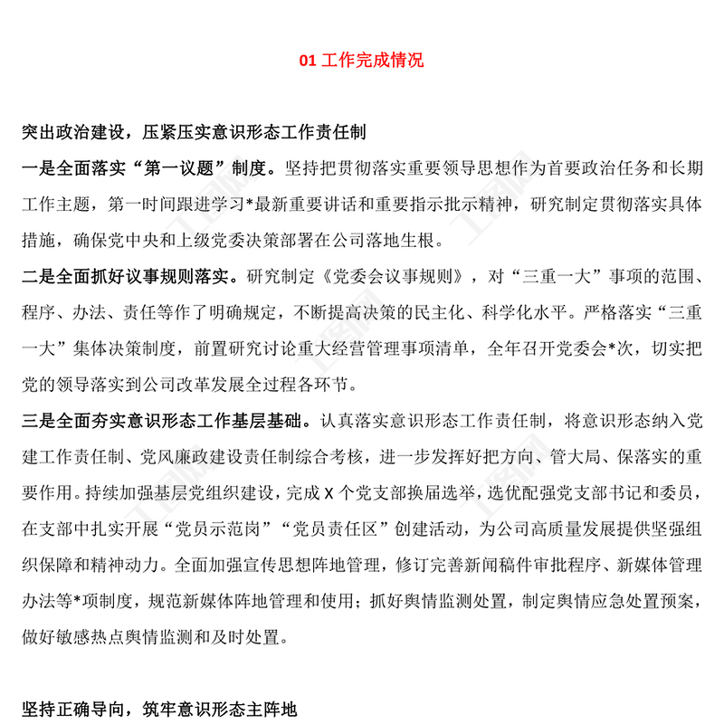 公司黨委2024年意識形態(tài)工作總結(jié)PPT模板(講稿)