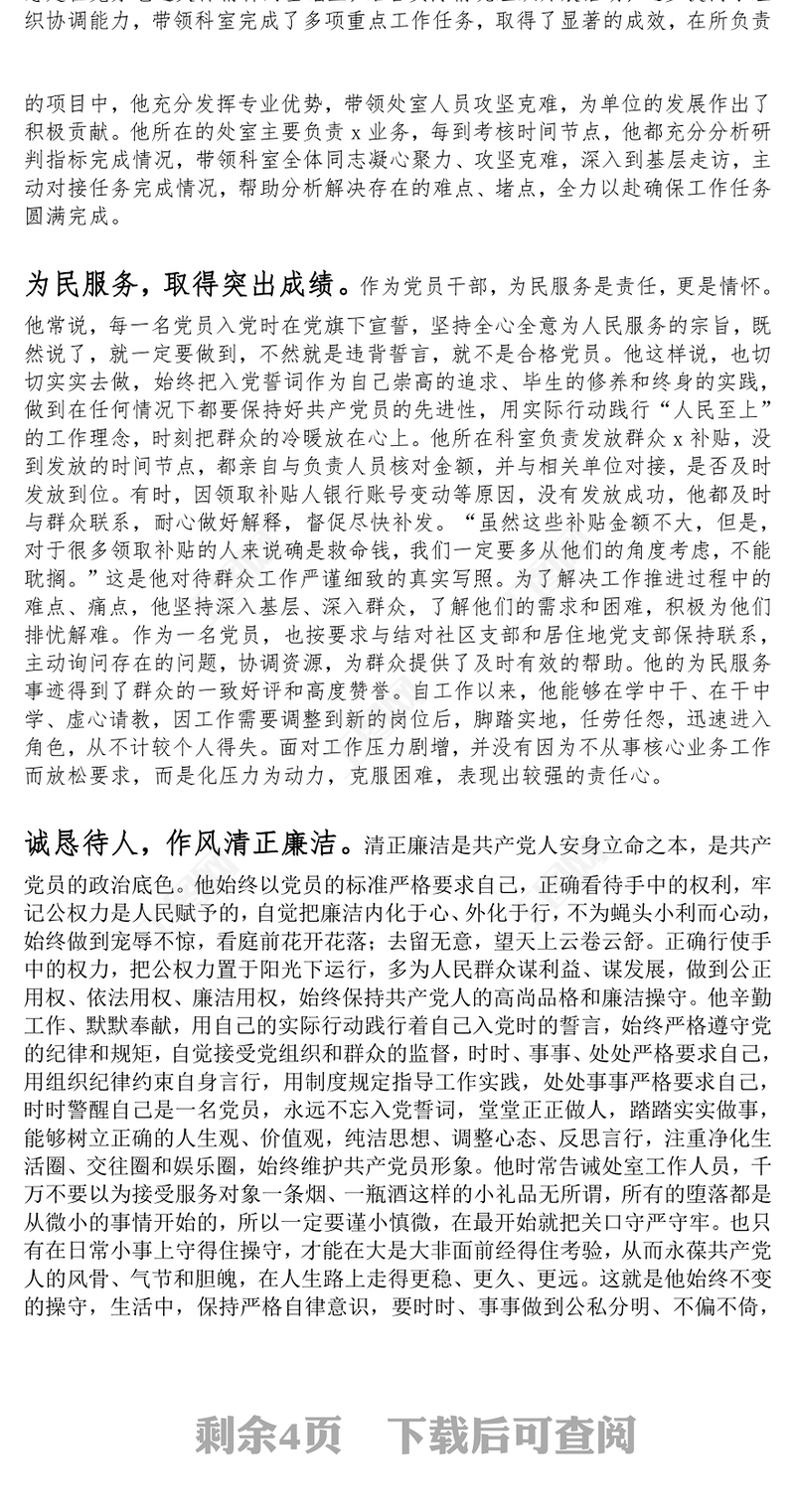優(yōu)秀共產(chǎn)黨員先進(jìn)事跡材料下載5