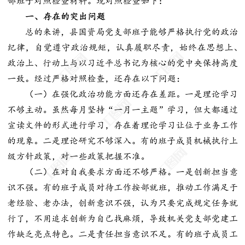 工圖網提供XXXX年局黨支部班子組織生活會對照檢查材料供會員免費下載。更多精彩黨課PPT素材,盡在工圖網。