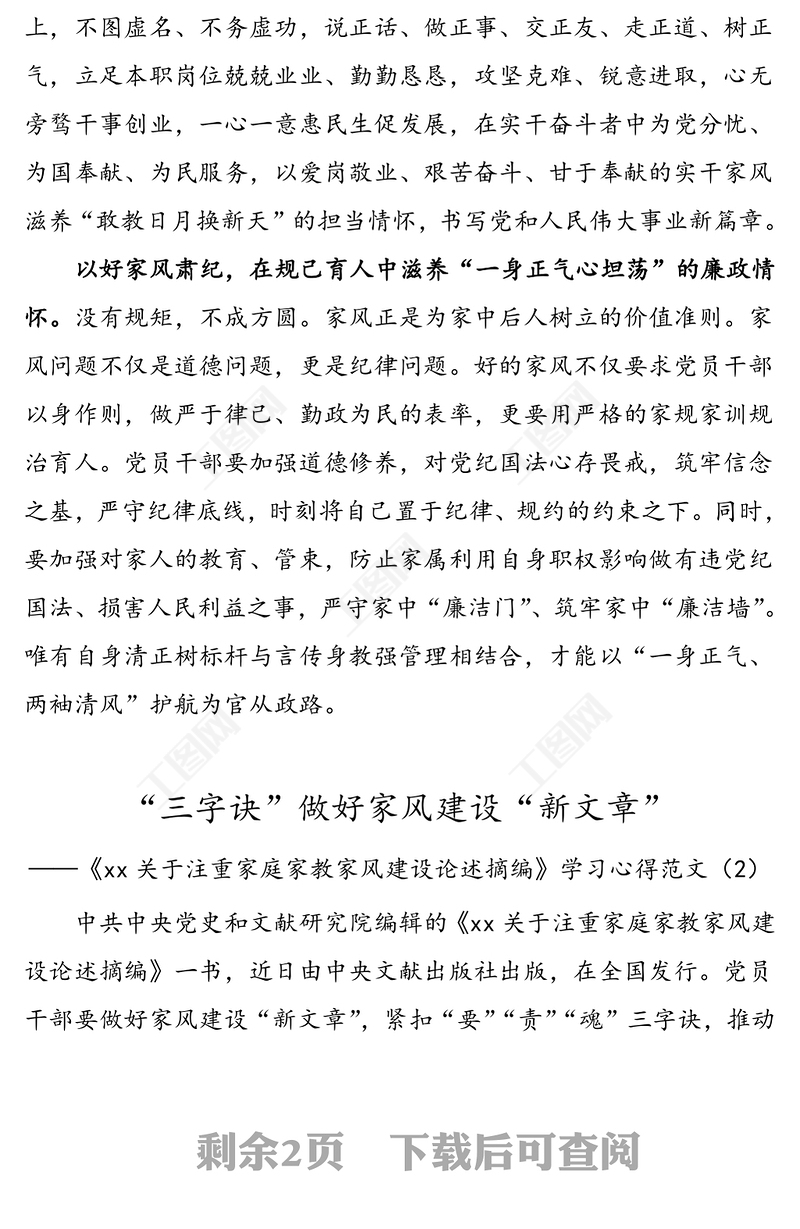 > 心得體會(huì) > 2篇xx關(guān)于注重家庭家教家風(fēng)建設(shè)論述摘編學(xué)習(xí)心得體會(huì)范文.DOCX 【圖片、文字、動(dòng)畫均可編輯】
