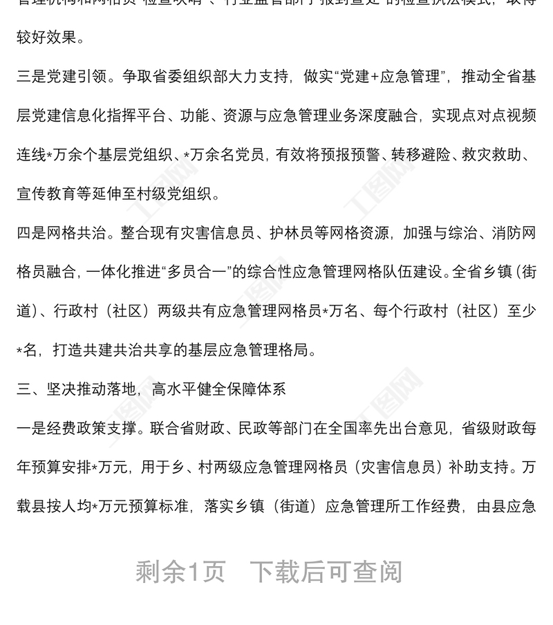 工圖網(wǎng)提供深化改革創(chuàng)新 堅(jiān)持探索先行 扎實(shí)推進(jìn)基層應(yīng)急管理體系和能力建設(shè)——省應(yīng)急管理廳交流發(fā)言材料供會(huì)員免費(fèi)下載。更多精彩黨課PPT素材,盡在工圖網(wǎng)。