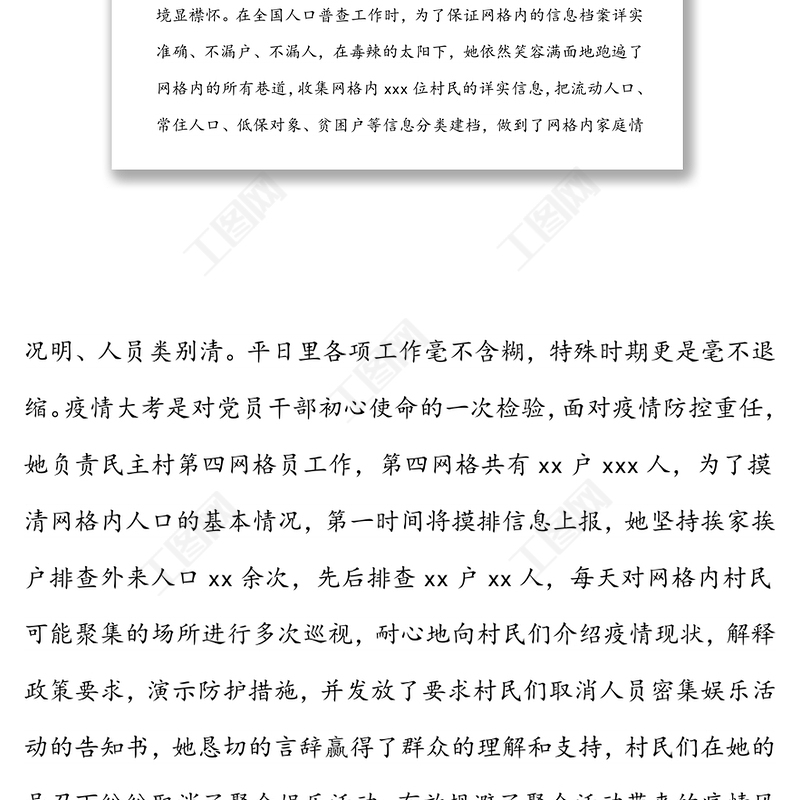 工圖網(wǎng)提供村黨員網(wǎng)格員事跡材料供會員免費下載。更多精彩黨課PPT素材,盡在工圖網(wǎng)。
