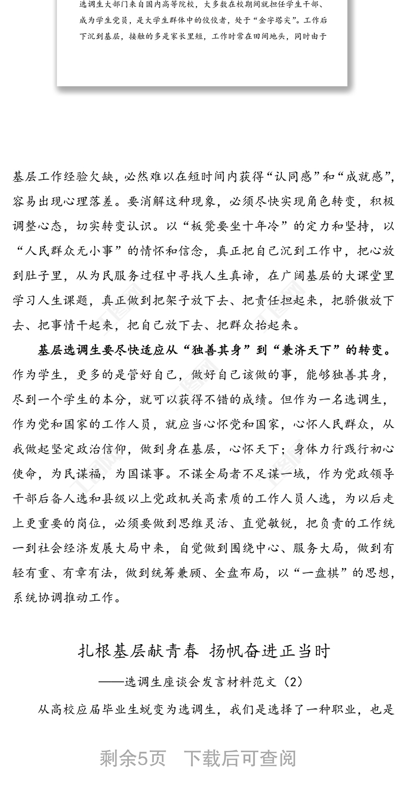 2篇選調(diào)生工作感悟座談會發(fā)言材料范文,發(fā)言材料,公文范文 Array