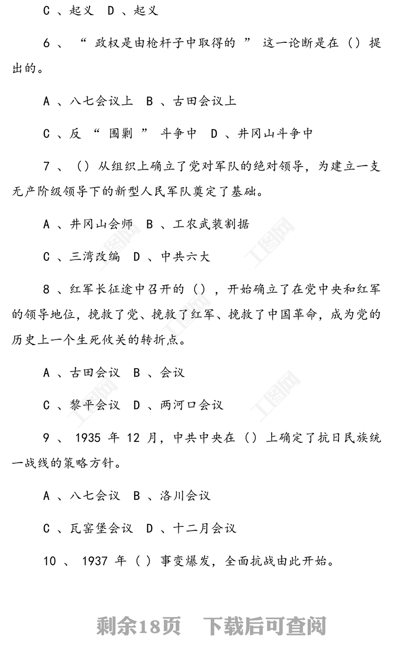 工圖網(wǎng)提供紀(jì)念建黨100周年黨史知識(shí)競(jìng)賽試題(答案附后)供會(huì)員免費(fèi)下載。更多精彩黨課PPT素材,盡在工圖網(wǎng)。