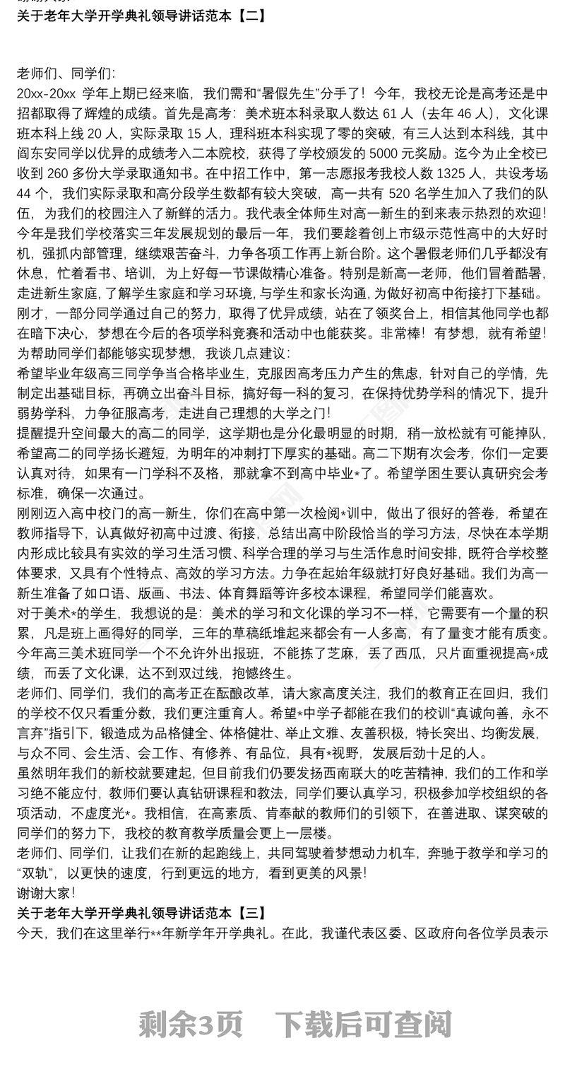 關(guān)于老年大學(xué)開學(xué)典禮領(lǐng)導(dǎo)講話范本 Array