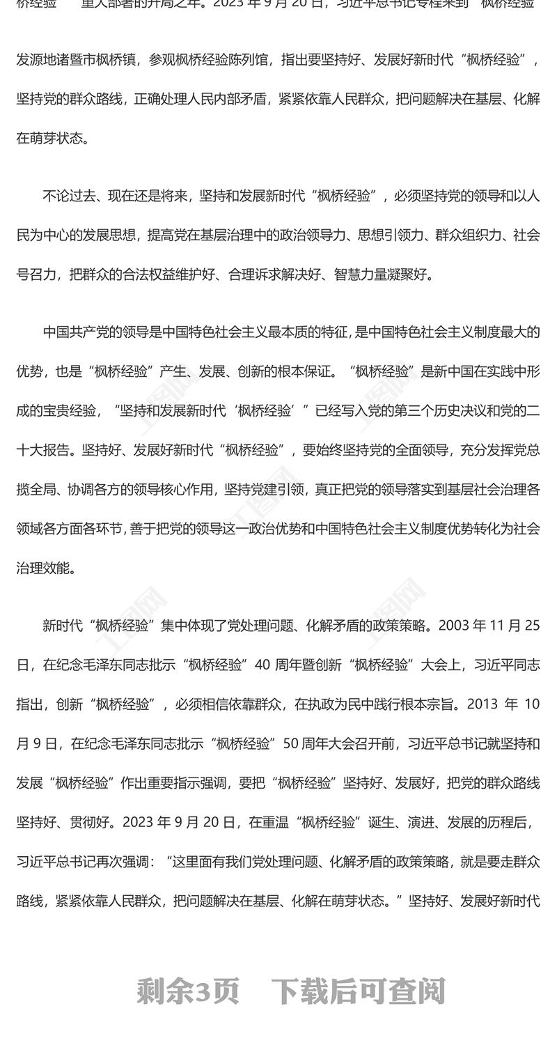 > 黨課講稿 > 深刻領(lǐng)悟新時代“楓橋經(jīng)驗”的價值意蘊ppt黨政風(fēng)新時代“楓橋經(jīng)驗”主題黨課(講稿).DOCX 【圖片、文字、動畫均可編輯】