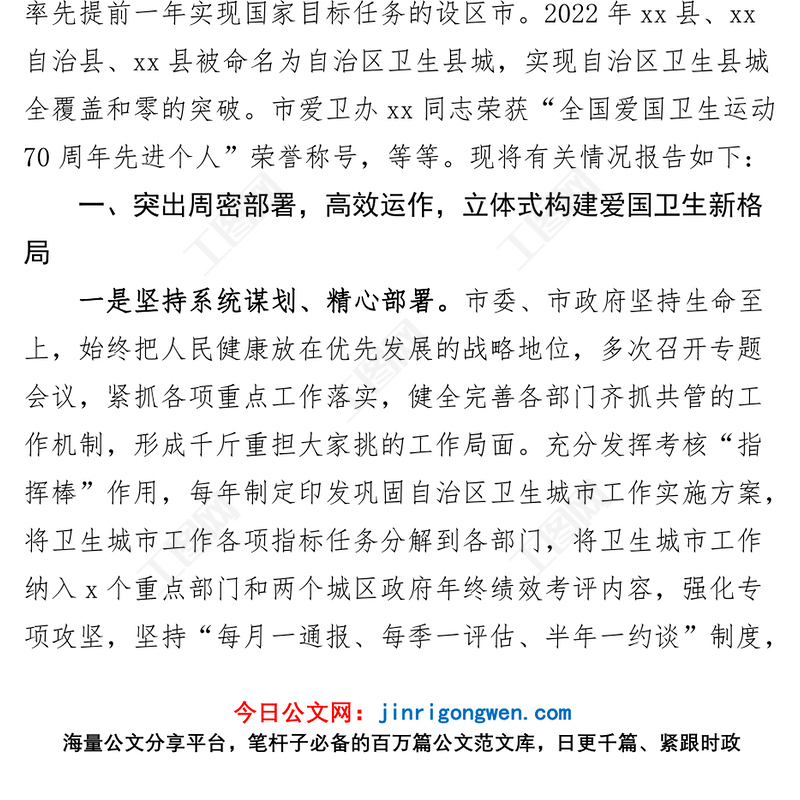 工圖網(wǎng)提供市衛(wèi)生健康委員會衛(wèi)生城鎮(zhèn)創(chuàng)建工作報(bào)告縣城城市總結(jié)匯報(bào)供會員免費(fèi)下載。更多精彩黨課PPT素材,盡在工圖網(wǎng)。
