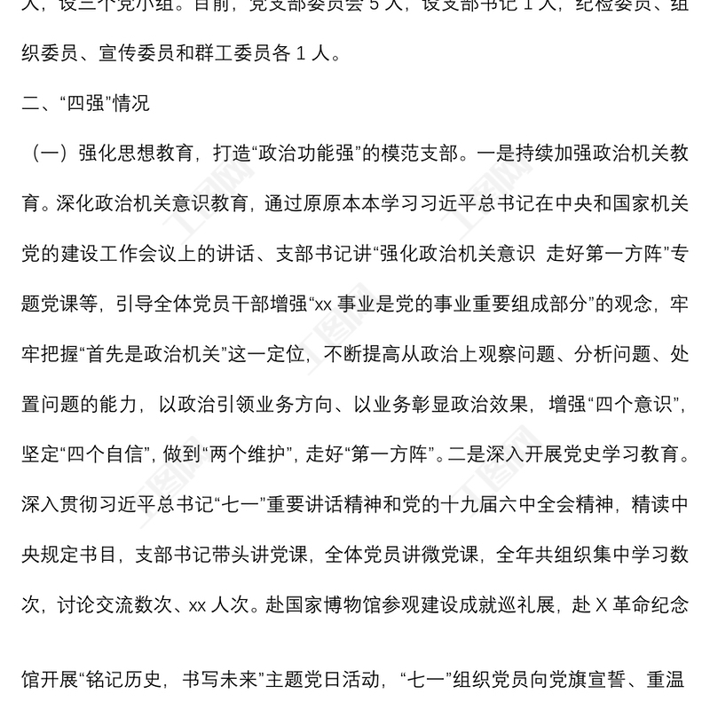 2022四強(qiáng)黨支部的創(chuàng)建方案2022四強(qiáng)黨支部自評(píng)材料2022機(jī)關(guān)創(chuàng)建四強(qiáng)黨支部自評(píng)材料2021民主生活會(huì)黨支部班子對(duì)照檢查材料2022爭(zhēng)創(chuàng)四強(qiáng)黨支部工作方案黨支部班子對(duì)照檢查材料20222021民主生活會(huì)學(xué)校黨支部班子對(duì)照檢查材料2022創(chuàng)建四強(qiáng)黨支部工作總結(jié)20222022年四強(qiáng)黨支部實(shí)施方案黨支部班子對(duì)照檢查材料最新20222021年黨支部黨史檢視剖析材料2021年巡視黨支部書(shū)記工作匯報(bào)材料2022創(chuàng)建四強(qiáng)黨支部總結(jié)2022年度黨支部書(shū)記對(duì)照檢查材料2022四強(qiáng)黨支部創(chuàng)建工作方案2023優(yōu)秀黨支部書(shū)記先進(jìn)事跡材料