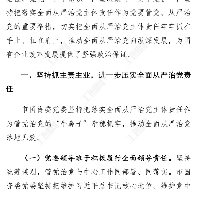> 報(bào)告 > 市國(guó)資委黨委2018年度落實(shí)全面從嚴(yán)治黨主體責(zé)任情況報(bào)告.DOCX 【圖片、文字、動(dòng)畫(huà)均可編輯】