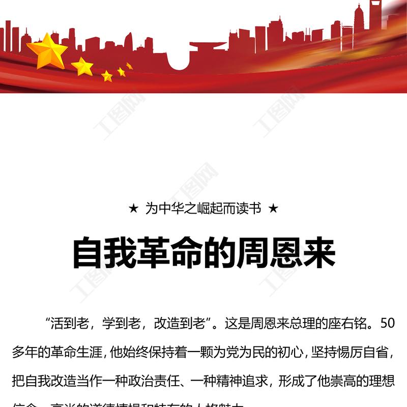 工圖網(wǎng)提供自我革命的周恩來(lái)PPT紅色精美早期共產(chǎn)黨人的自我革命精神黨史天天學(xué)黨課課件(講稿)供會(huì)員免費(fèi)下載。更多精彩黨課PPT素材,盡在工圖網(wǎng)。